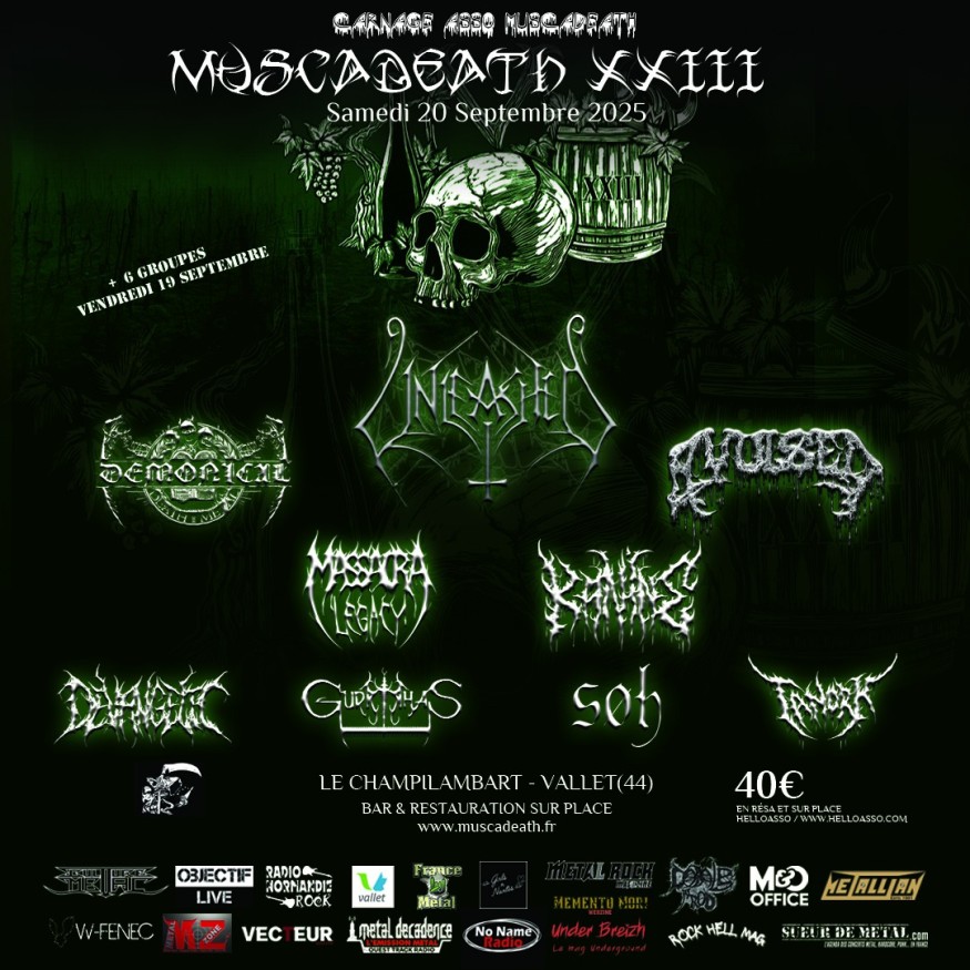 Et voilà, cette folle soirée se termine, j'ai la tête qui tourne tellement que c'était bon.... Un énorme merci à Ben et Manue, les organisateurs de ce festival et toute l'équipe du Muscadeath ( bénévoles et sécurité : une équipe hyper sympa !!!!! ) pour cette 23° édition, 2 superbes soirées intenses pour ce week-end. Je remercie énormément encore Ben qui m'a attitré l'exclusivité de photographier officiellement les groupes pour le fest, et d'avoir apposé le logo de Cabale Prod sur le back drop officiel de l’événement.