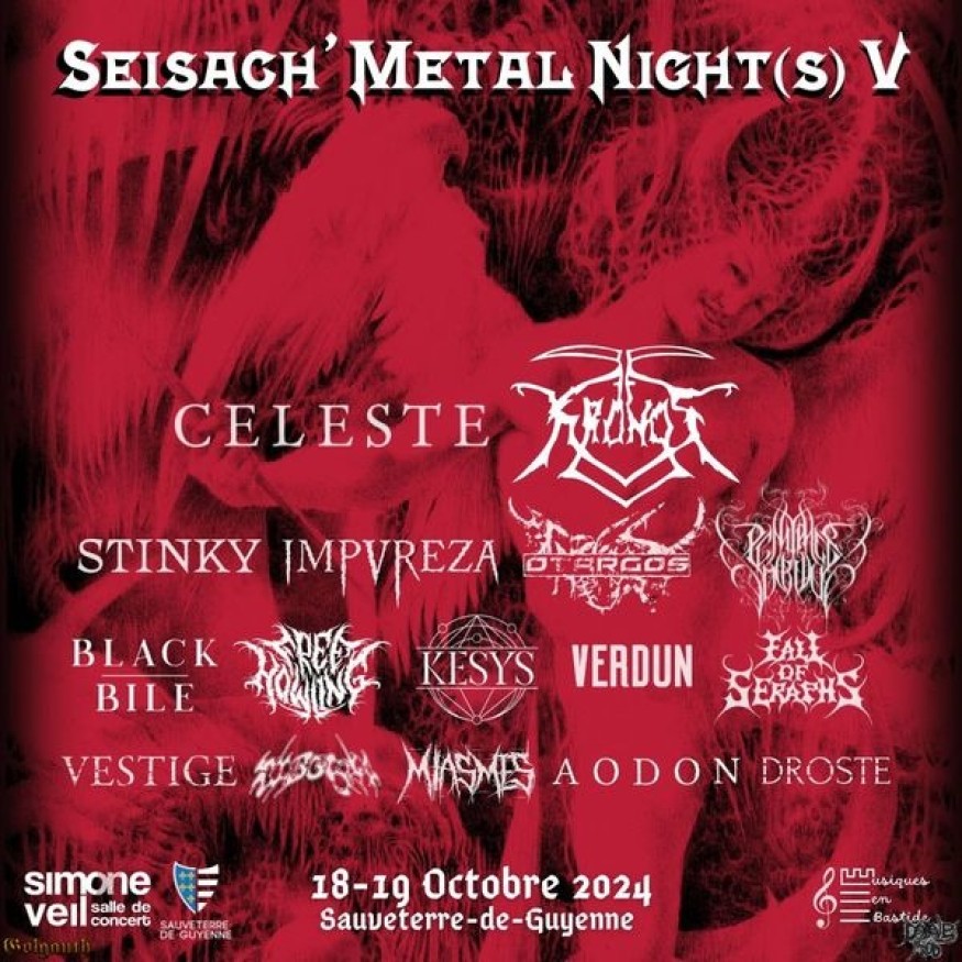 C'est la 2° fois que la team CABALE se déplace en terre de Guyenne afin de rejoindre la très sympathique salle Simone Veil où se tient la Seisach Metal Night n° 5, avec la particularité pour cette année 2024 d'être programmée sur 2 jours. Mais à cause du taf respectif de chacun, nous n'étions pas présent vendredi avec l'affiche : KIBOSH – VESTIGE – BLACK BILE – CELESTE – STINKY – FREEHOWLING.