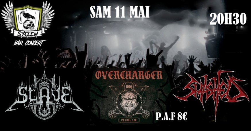 Toujours géré par l'excellent John qui, en ce samedi 11 mai 2024 accueille une belle affiche avec SMASHED – OVERCHARGER – SLAVE ONE, organisé par le groupe OVERCHARGER en partenariat avec CABALE PROD.