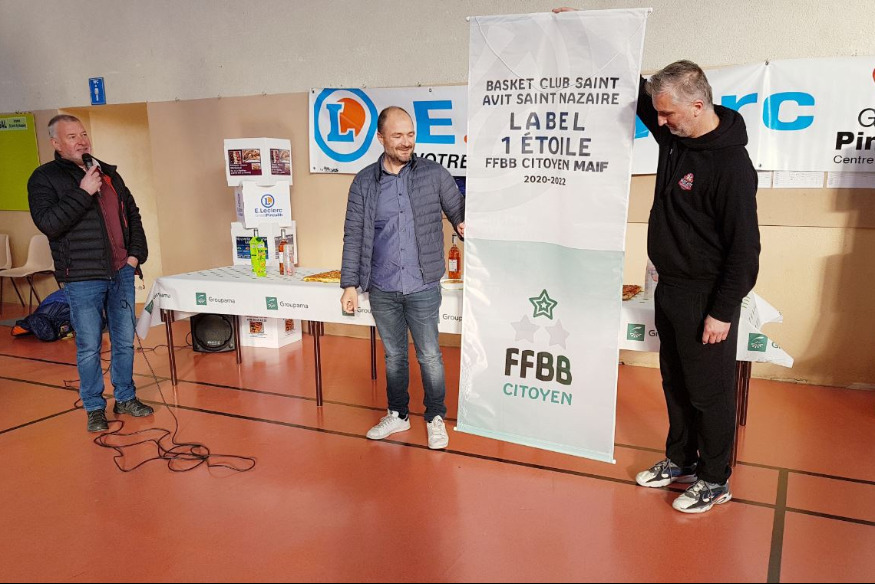 Samedi 02 Avril 2022 le Club de Basket de St Avit St Nazaire organisait son grand tournoi des jeunes dans la salle Marcel DUCHANT en présence des équipes de St Médard en Jalle, Talence, Izon, Tresse, Illats. Devant un public comblé, on a pu vivre de belles rencontres sportives. Fort de son implication, le Club c'est vu remettre le label citoyen 1 étoile par la Fédération Française de Basketball. Le programme FFBB Citoyen est destiné aux clubs, pour les encourager et mettre en valeur les initiatives locales en faveur du Développement Durable via le Label FFBB Citoyen MAIF.