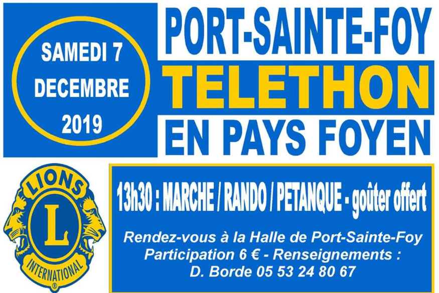 Les associations du Pays Foyen, l'amicale laïque et Lions Club organisent des animations au profit du Téléthon le samedi 07 Décembre à PORT STE FOY.