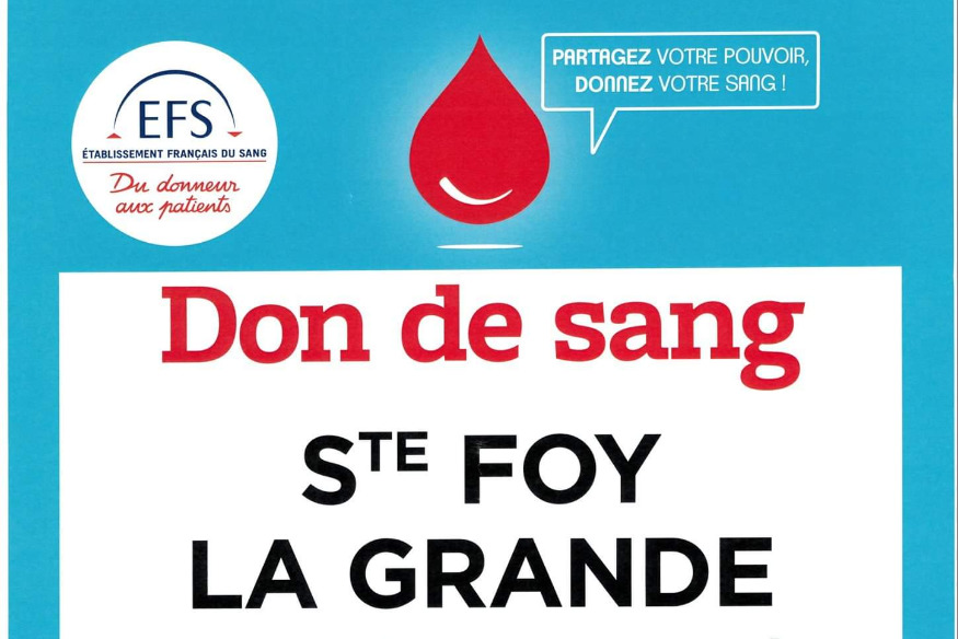 L'établissement du sang (EFS) atire l'attention des citoyens sur l'imporance de donner son sang pour garantir un niveau suffisant des stocks sanguins. Rendez-vous ce mercredi 02 Octobre 2019 à STE FOY LA GRANDE entre 10h30-13h30 et 15h30-19h00 à la salle Clarisse Briand.