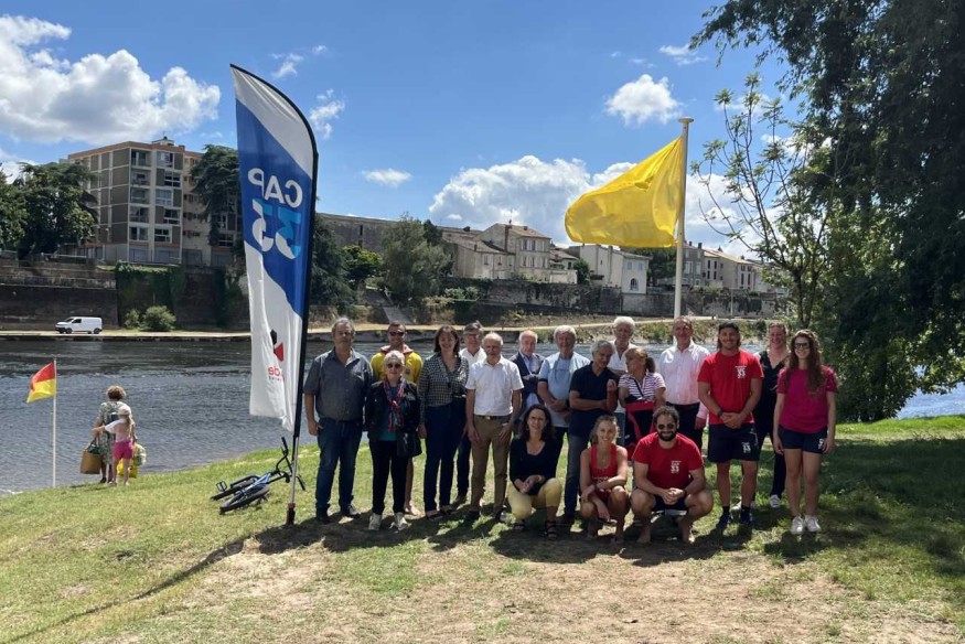 Vendredi 12 juillet, Pierre Robert, Président de la CdC du Pays Foyen, Christelle Guionie, Conseillère départementale de la Gironde et Vice-présidente de la CdC, Daniel Barbe, Conseiller départemental de la Gironde, des Vice-présidents de la CdC, des élus du territoire et des associations partenaires, se sont rendus sur le site de la plage des Bardoulets, qui accueille depuis le mardi 2 juillet les dispositifs CAP33, CAP 33 juniors et Cap sur les livres et les jeux.