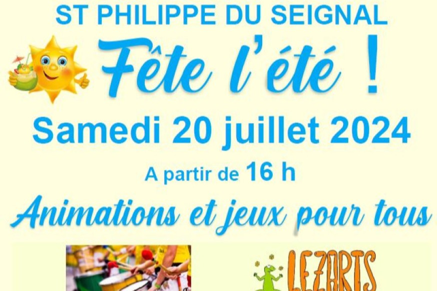 Devenue désormais incontournable, les associations et la municipalité de St Philippe du Seignal, proposent "la Fête de l'Eté" le samedi 20 juillet, place de la Liberté. Un rendez-vous festif intergénérationnel.