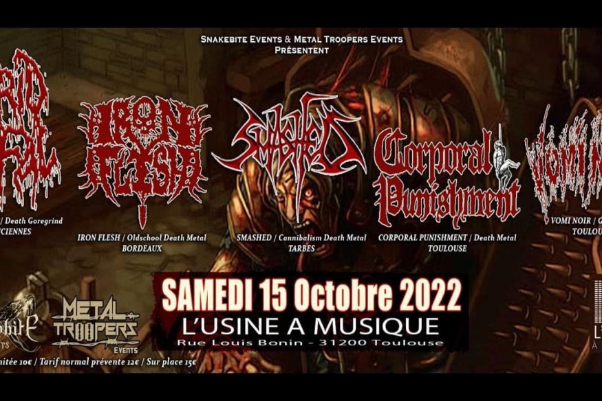CARNET DE CONCERT - PUTRID OFFAL – IRON FLESH – SMASHED – CORPORAL PUNISHMENT – VOMI NOIR 15/10/2022 à l'Usine à musique – Toulouse (31) -