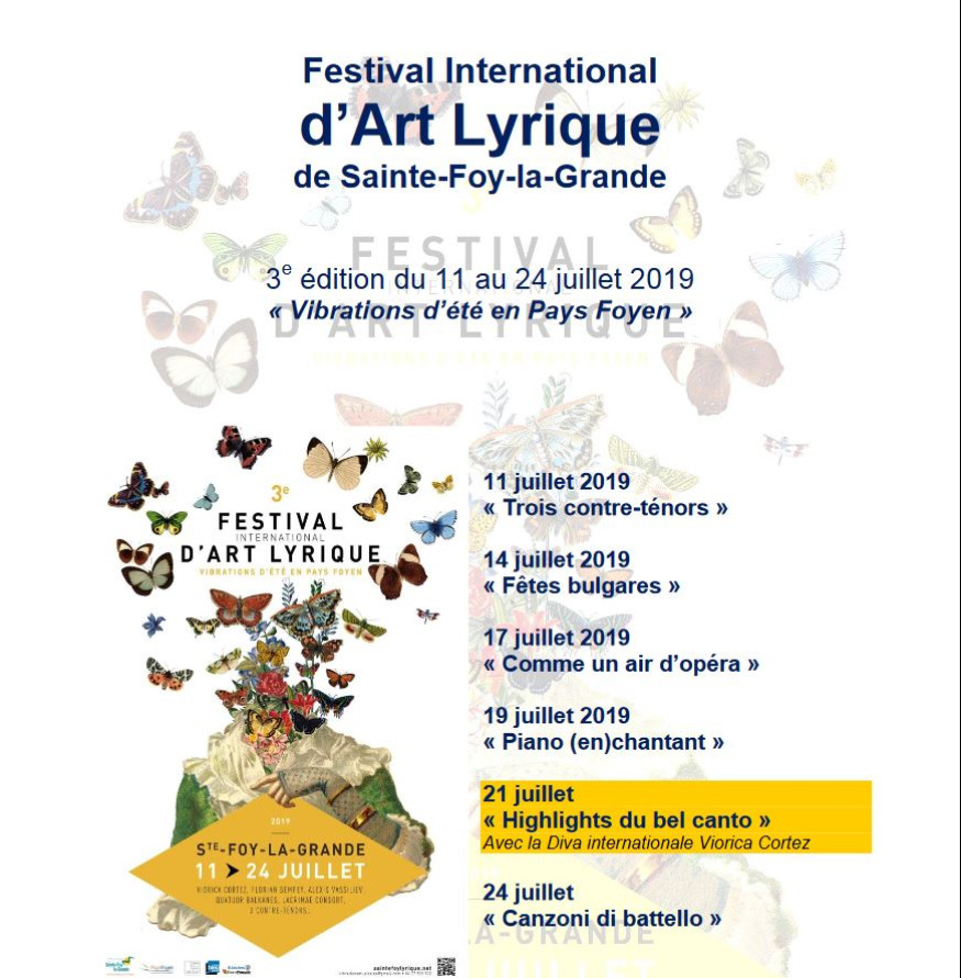 La Commune de Sainte-Foy-la-Grande organise son troisième festival d’art lyrique « Vibrations d’été en Pays Foyen » du jeudi 11 au mercredi 24 juillet 2019.