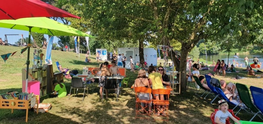 Cet été encore, la médiathèque de Pellegrue, la ludothèque, le centre socioculturel du Pays Foyen et la Micro-Folie se sont associés pour vous proposer une bibliothèque-ludothèque éphémère sur les rives de la Dordogne, plage des Bardoulets à Port-Sainte-Foy-et-Ponchapt.