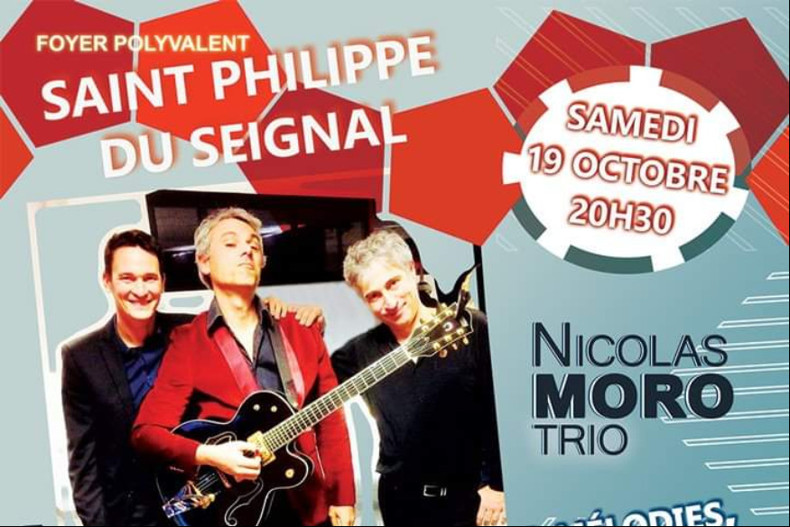 Le prochain concert organisé à st Philippe du Seignal par l' association "Chapeau Bas" aura lieu le Samedi 19 octobre à 20h30 au foyer polyvalent.Au programme, un concert de chansons françaises, avec le chanteur guitariste Nicolas Moro qui se produira en trio.