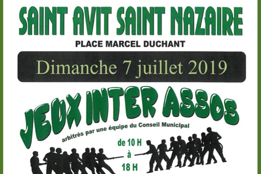 La commune de Saint-Avit-Saint-Nazaire organise une journée inter-Associations.L'occasion pour les associations de la commune de disputer des compétitions sportives entre elles sous le signe de la bonne humeur et de la convivialité.Cette journée est ouverte à tous.Repas et buvette sur place seront proposés.Rendez-vous salle Marcel Duchant et au stade de ST AVIT ST NAZAIRE à partir de 10h le 07 Juillet 2019