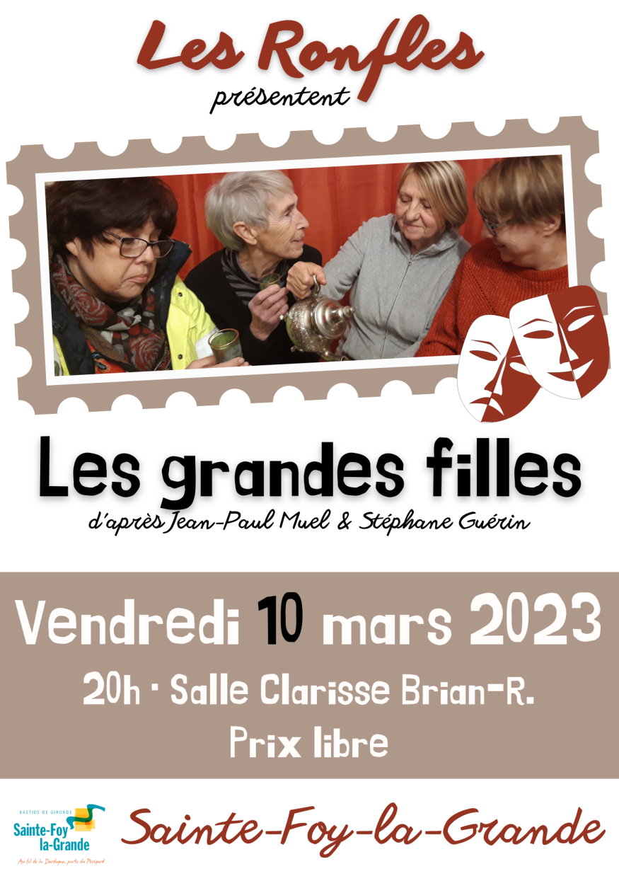 Dans le cadre de sa programmation culturelle, la ville de Ste Foy La Grande accueille une compagnie locale de théâtre amateur ce vendredi 10 mars 2023 : Les Ronfles. La troupe comptabilise déjà 38 années d’existence dans la Bastide, où elle a été fondée en 1985 par son Président François Mas et deux des comédiennes présentes sur scène.
