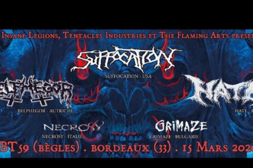 CABALE est partenaire de THE INSANE LEGIONS et pour l’occasion, The Insane Legions vous offrent deux fois une place à gagner pour le concert organisé le 15 mars 2020 au BT 59 à Bègles -33-avec :SUFFOCATION-BELPHEGOR-HATE-NECROSY-GRIMAZE