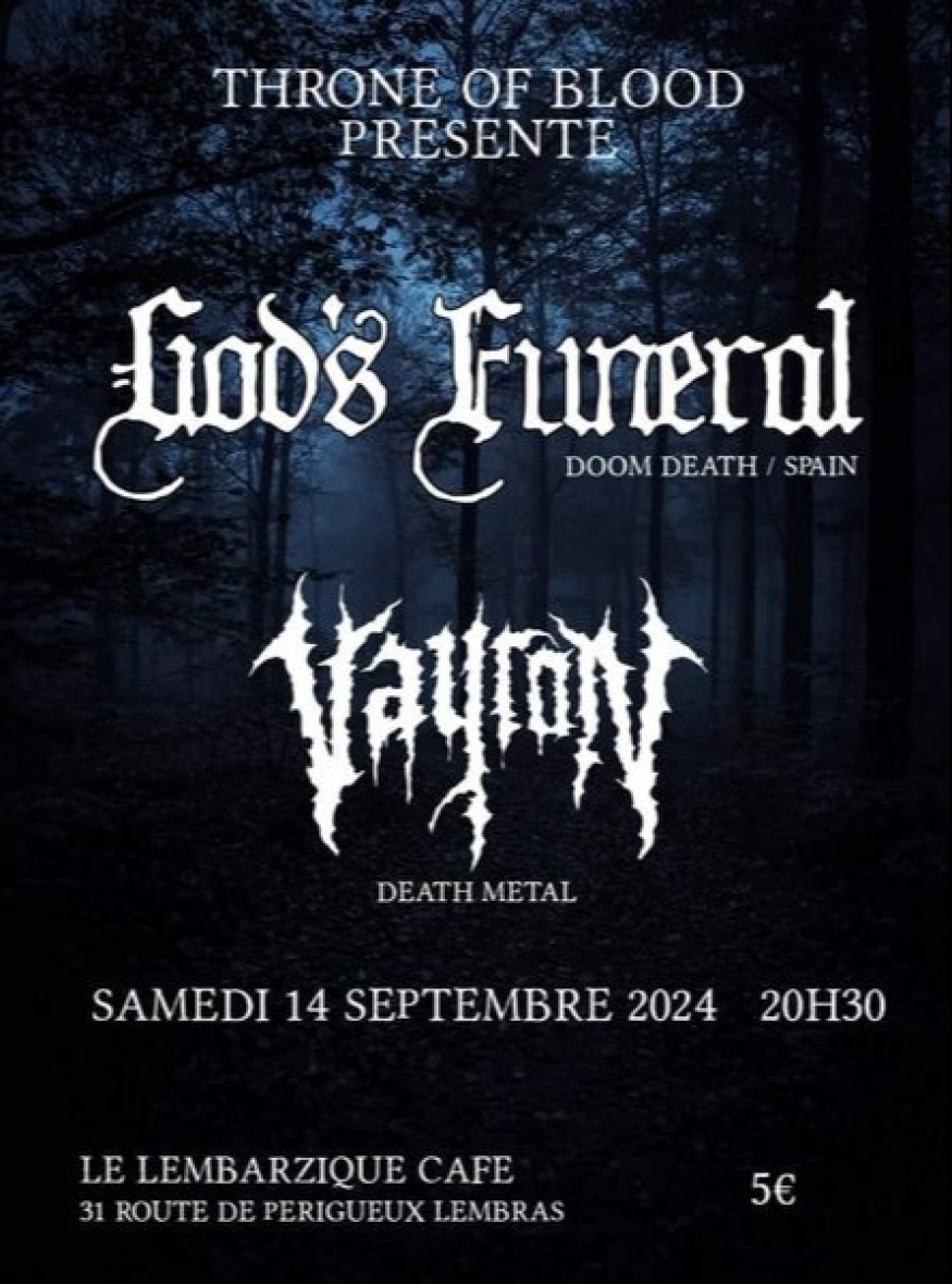Merci à Martin de Throne of Blood Asso pour la tenue de cette soirée ; à Matt et le Lembarzique pour les locaux ; God's Funeral et VayroN pour leur prestation.