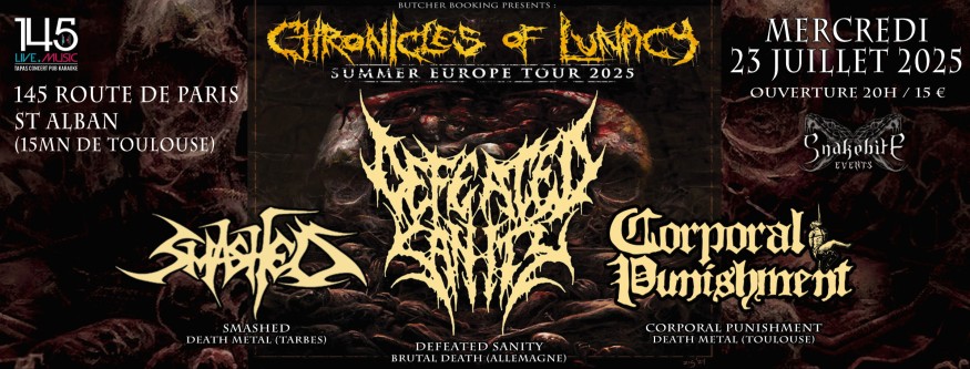 Qu'avons-nous pour ce soir ? Les potos de SMASHED et CORPORAL PUNISHMENT, et DEFEATED SANITY. Soirée organisé par SNAKEBITE EVENTS.