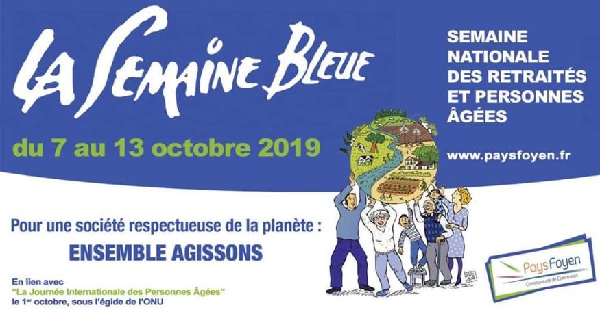 La Communauté de Communes du Pays Foyen organise l’édition 2019 de la Semaine Bleue. Celle-ci se déroulera du 7 au 13 octobre prochain avec, comme thème national, « Pour une société respectueuse de la planète : ensemble agissons ». Cet événement est l’occasion d’organiser tout au long de la semaine des animations qui permettent de créer des liens entre générations.