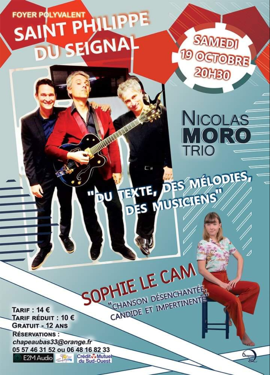 Le prochain concert organisé à st Philippe du Seignal par l' association "Chapeau Bas" aura lieu le Samedi 19 octobre à 20h30 au foyer polyvalent.