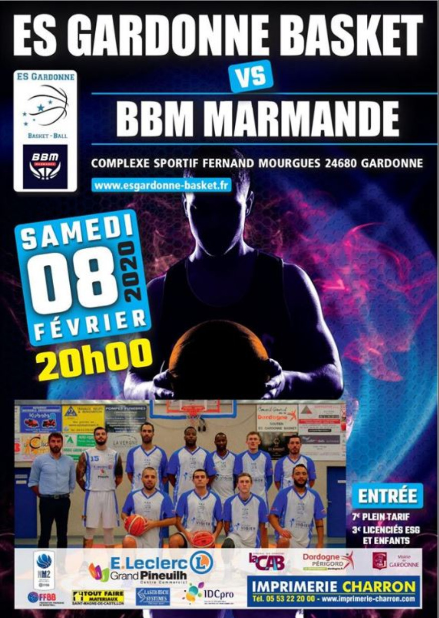 Ce samedi 8 Février à 20h00, l'ES Gardonne Basket reçoit l'équipe de MARMANDE. Les joueurs auront besoin de vous lors de cette rencontre face à aux voisins marmandais. Ce match est un tournant dans la saison pour notre maintien en Nationale 2.