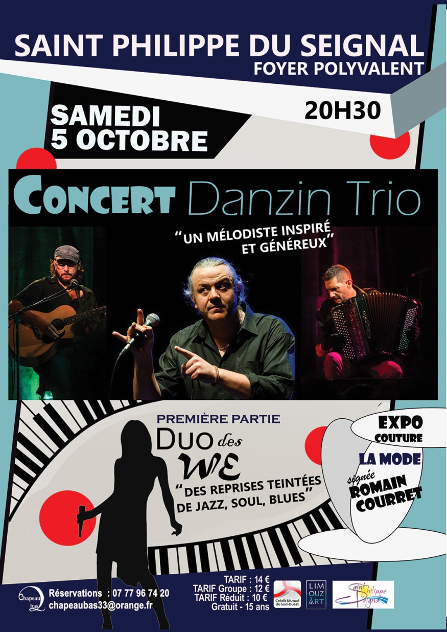 Pour son prochain concert, l’association "Chapeau Bas" de Saint Philippe du Seignal (33) accueille l’auteur-compositeur interprète Pierre Paul Danzin le samedi 5 octobre 2024, à 20 h 30 au foyer. Pierre Paul Danzin, c’est une voix habitée et mélodique, une écriture poétique et ciselée, un interprète attachant. Il porte un regard humaniste, attentif, tendre et amusé, parfois corrosif sur le monde d’aujourd’hui. Ses chansons sont des voyages. Il s’entoure de la complicité de son frère Alexandre Danzin à la guitare et au ukulélé. En première partie, le Duo des We offre un programme de reprises teintées de jazz, soul, blues, servi par la voix chaude et enveloppante de Nancy Gava et le piano de Thi-baut Marsan. Deux artistes talentueux qui participent au groupe vocal Entrelacs. Une expo proposée par un artiste foyen est à découvrir, cette fois, c’est le couturier Romain Courret à l’honneur, avec quelques-unes de ses dernières créations.