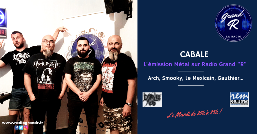 Emission bi-mensuelle sur l'univers du métal présentée par Arch Gros Barbare, Smooky, le Mexicain et Gauthier du collectif Cabale Prod sur Radio Grand "R" de 20h à 23h ! Au programme , Hard, Doom, Black, Grind, Thrash, Death, Indus, annonces concerts, live reports, annonces sorties d'album, festivals... Interview téléphoniques en lignes, de groupes, labels, assos dans tout l'hexagone et émissions spéciales avec groupes de musiques métal de la région Aquitaine.