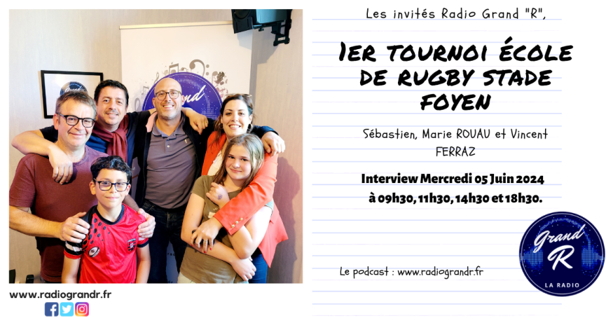 On revient sur l'évènement sur Radio Grand "R" avec la Présidente de l'école de rugby du Stade Foyen Marie ROUAU, Sébastien ROUAU et Vincent FERRAZ de l'association au micro de Matthieu FOURNIER !