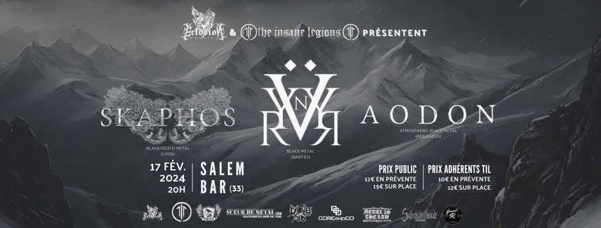 On ne vous présente plus le Salem ( LE HAILLAN – 33 ), ce petit pub muni d'une salle de concert fort sympathique qui propose également à l'étage les loges et des salles de répet ; le tout géré par l'excellent John qui, en ce samedi 17 février 2024 nous accueille car The Insane Legions organise un beau live black metal avec AODON, SKAPHOS et RUYYN.