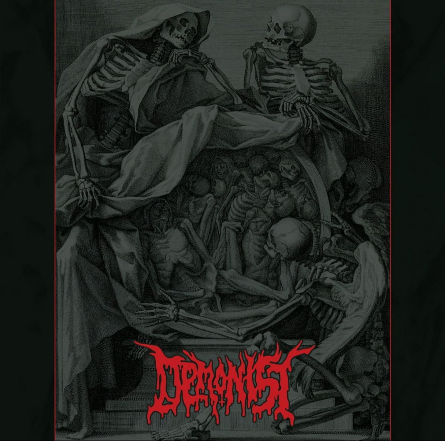 Cependant, s’il est vrai que si « Priest of skin » donne l’impression d’avoir un groupe de death de la génération Z, les premiers riffs de ce morceau font peur sur le début de morceau, parce qu’on a la sensation d’avoir du riff de l’ère glaciaire. Mais le réchauffement climatique étant ce qu’il est, la musique de DEMONIST se dévoile petit à petit sur ce premier titre. On sent l’envie d’aller au fond de la grotte, même si le manche démange de haut en bas par endroits et que DEMONIST s’accroche à présenter un premier titre honorable de death metal basique avec tout de même une batterie massive, qui rappelle les rois du disco Morbid Angel.