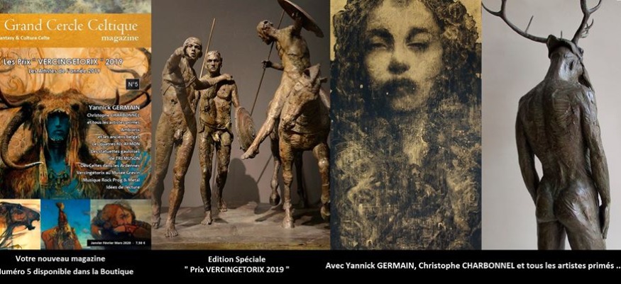 Magnifique nouveau numéro spécial présentant tous les Artistes de l'année 2019 avec notamment les magnifiques toiles de Yannick GERMAIN, artiste peintre de l'année et " Grand Prix VERCINGETORIX 2019 " et notre hommage aux magnifiques sculptures de Christophe Charbonnel, Sculpteur de l'année 2019, l'un des rares sculpteurs français à avoir récemment représenter Lug, Cuchulainn, Esus ou Taranis (mythologie celte).