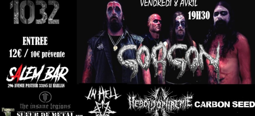 On ne vous présente plus le Salem ( LE HAILLAN – 33 ), ce petit pub muni d'une petite salle de concert – répet, géré par l'excellent John qui, en ce vendredi 08 avril 2022 accueille un live assez sympa puisque nous avons donc ce soir nos blackeux de GORGON, les fous furieux de HEBOÏDOPHRENIE et CARBON SEED.