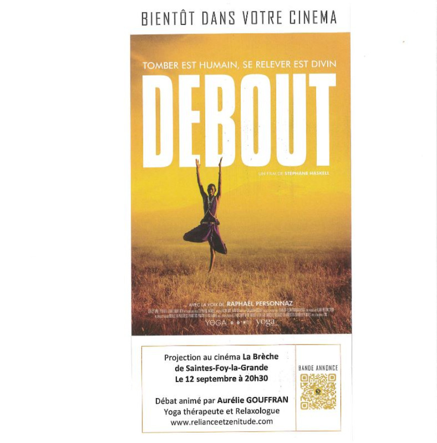 Ciné débat autour du film DEBOUT de Stéphane Haskell. Débat animé par Aurélie GOUFFRAN, Yoga, thérapeute et relaxologue.