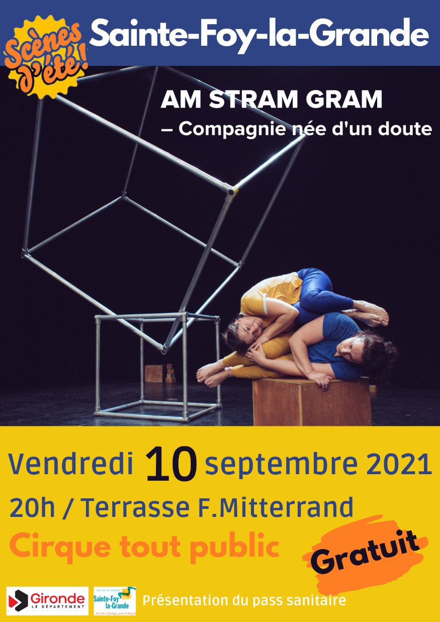 La ville de Sainte-Foy-la-Grande relance sa saison culturelle dans la Bastide Foyenne avec un programme trimestriel riche et varié pour tous. Le service culture et animation accueillera la compagnie girondine "Née d’un doute" le vendredi 10 septembre 2021 pour son spectacle de cirque jeune et tout public « Am Stram Gram », dans le cadre du dispositif Scènes d’été du Département de la Gironde. Cette ouverture de saison est gratuite, mais la présentation du passe sanitaire sera demandée à l’entrée.