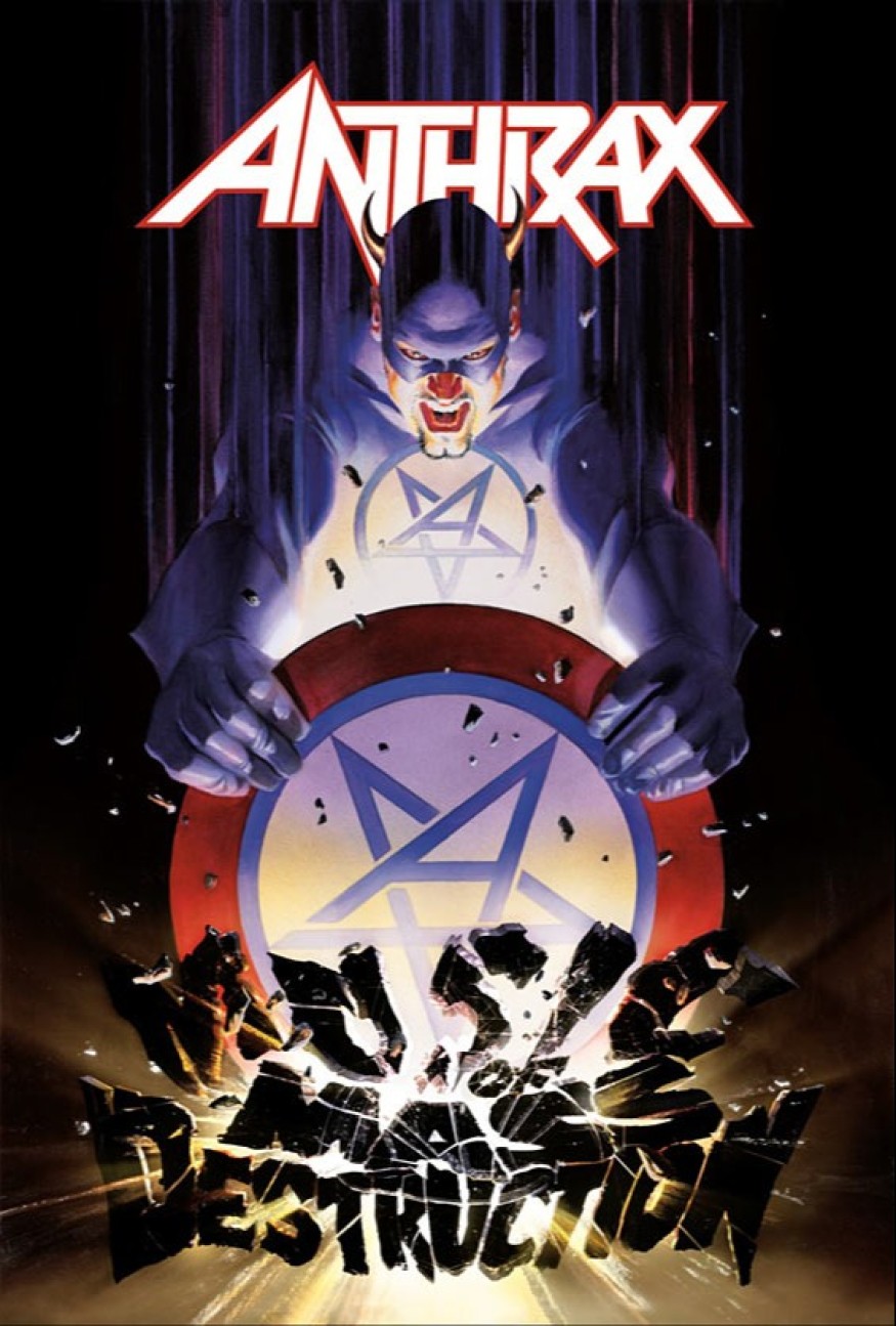Si Anthrax a petit à petit lâché son image de « Not » avec la tête de ce bonhomme dessiné qui a été le plus présent sur l'album « State of Euphoria », c'est un super héros qui s'offre à nous sur « Music of Mass Destruction ». Un super héros à l'image de celui de Marvel « Captain America », exactement dans le même trip, mais de couleur mauve au lieu de bleu , et avec un bouclier « Anthrax » au lieu des couleurs de « l'Amérique salvatrice ». Et le fait que son bouclier détruise le titre du dvd, annonce un contenu aussi puissant que peut l'être ce bouclier.