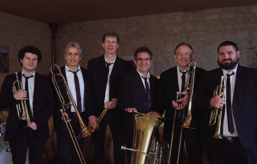 Un Sextuor de cuivres, 6 musiciens avec trompettes, trombones, tubas et percussions !