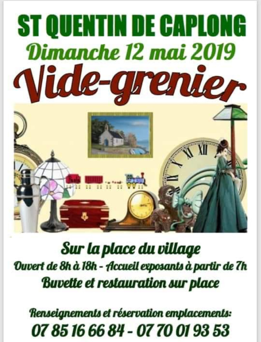 Vide grenier dimanche 12 mai 2019 sur la commune de St Quentin de Caplong entre 08h et 18h. De nombreux exposants sont attendus sur la place centrale du village.