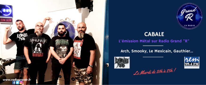 Emission bi-mensuelle sur l'univers du métal présentée par Arch Gros Barbare, Smooky, le Mexicain et Gauthier du collectif Cabale Prod sur Radio Grand "R" de 20h à 23h ! Au programme , Hard, Doom, Black, Grind, Thrash, Death, Indus, annonces concerts, live reports, annonces sorties d'album, festivals... Interview téléphoniques en lignes, de groupes, labels, assos dans tout l'hexagone et émissions spéciales avec groupes de musiques métal de la région Aquitaine.